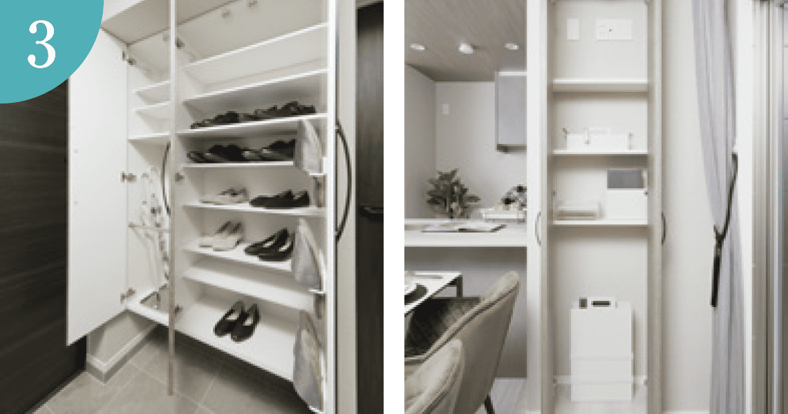 各洋室のクローゼットをはじめ、押入や各所に物 入を配置し、豊富な収納を確保しました。